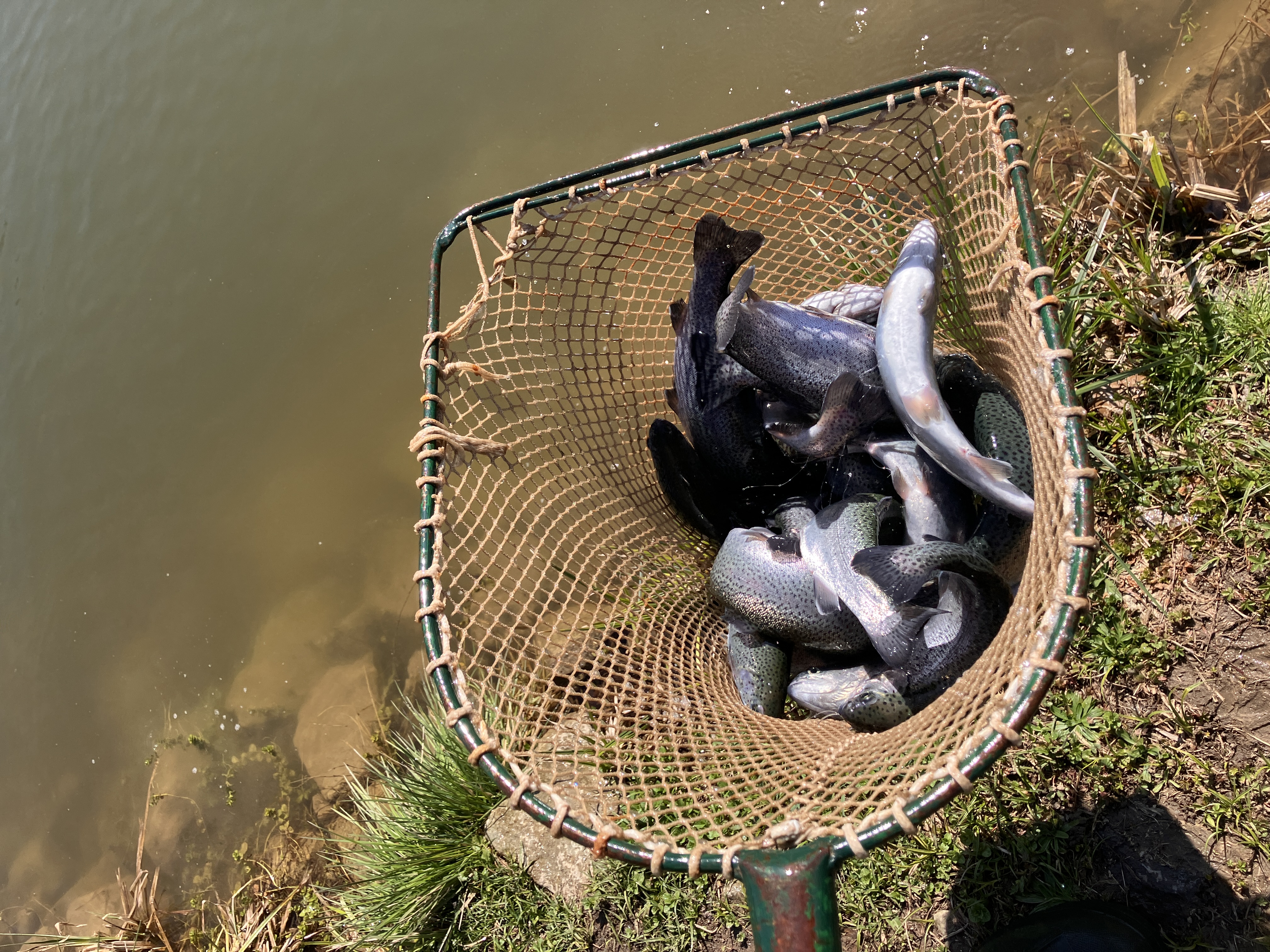 Nasadili jsme pstruhy duhové a dále byla nasazena dotace od Středočeského územního svazu. V revíru tedy plave cca 1450 ks 0,35 kg vážících pstruhů.